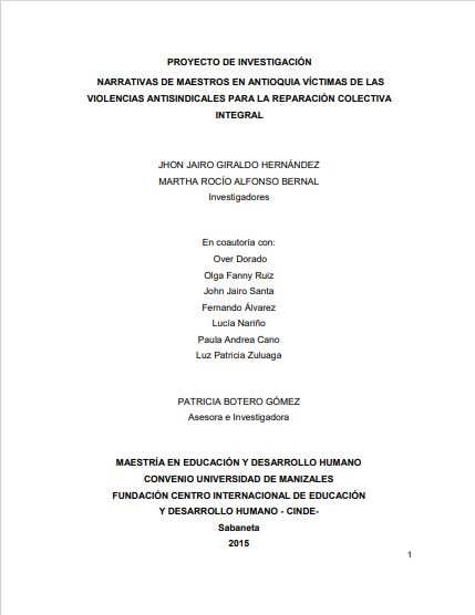 Narrativas de maestros en Antioquia víctimas de las violencias antisindicales para la reparación colectiva integral.