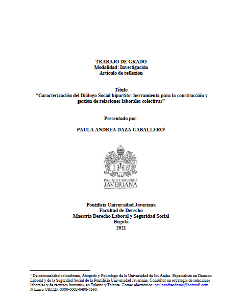 Caracterización del Diálogo Social bipartito: herramienta para la construcción y gestión de relaciones laborales colectivas